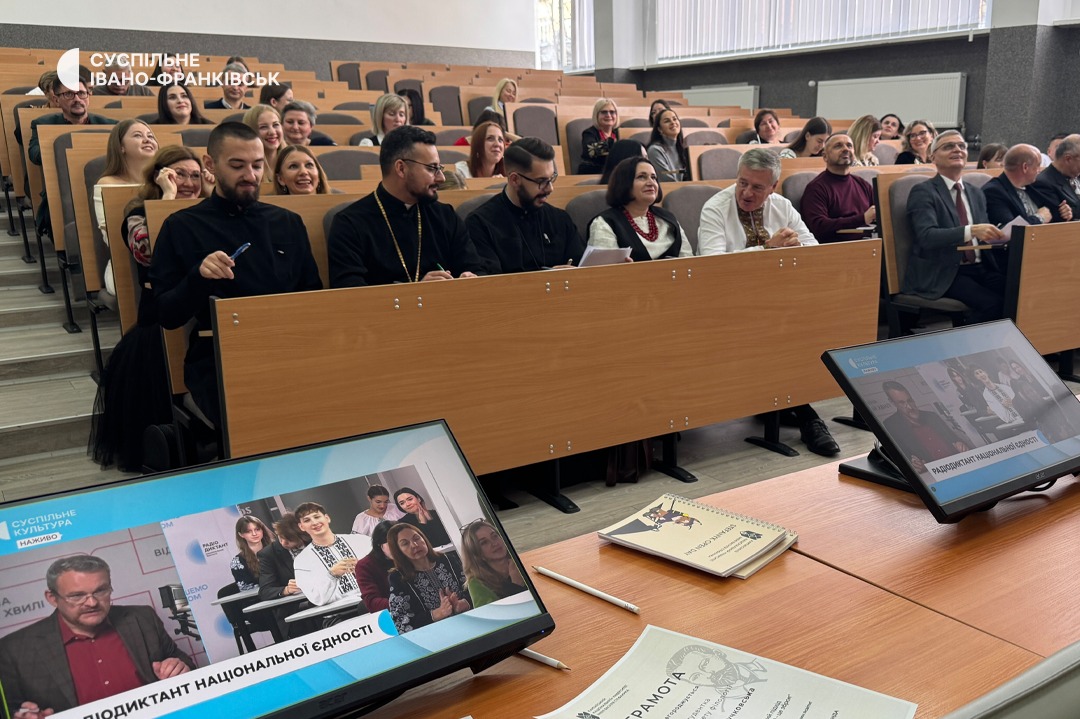 «Раді вас вітати! Ми вже вкотре пишемо Радіодиктант національної єдності разом — спільно з учнями, науковцями, військовими та відомими людьми Прикарпаття — у стінах нашого університету. Бажаю всім натхнення, зосередженості й любові до рідного слова. Нехай цей день ще раз нагадає нам, що українська мова — це те, що об’єднує нас, надихає та зміцнює нашу національну єдність», — зазначила Галина Волощук.